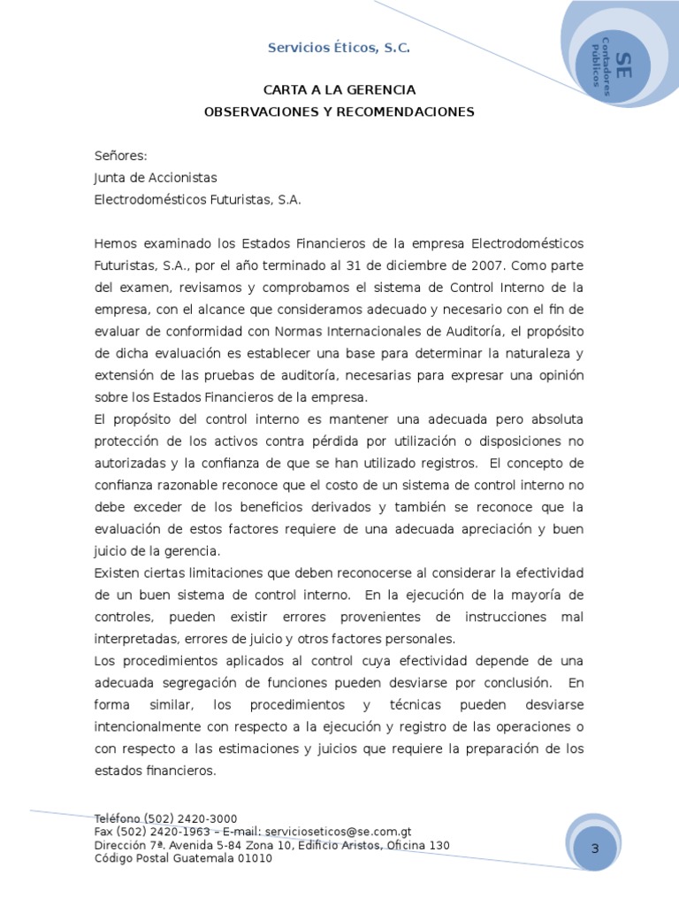 Carta A La Gerencia Auditoría Financiera Bancos via es.scribd.com
